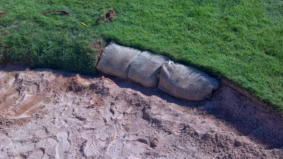 This is the left greenside bunker on #6. You can see the bags as well as the sod.